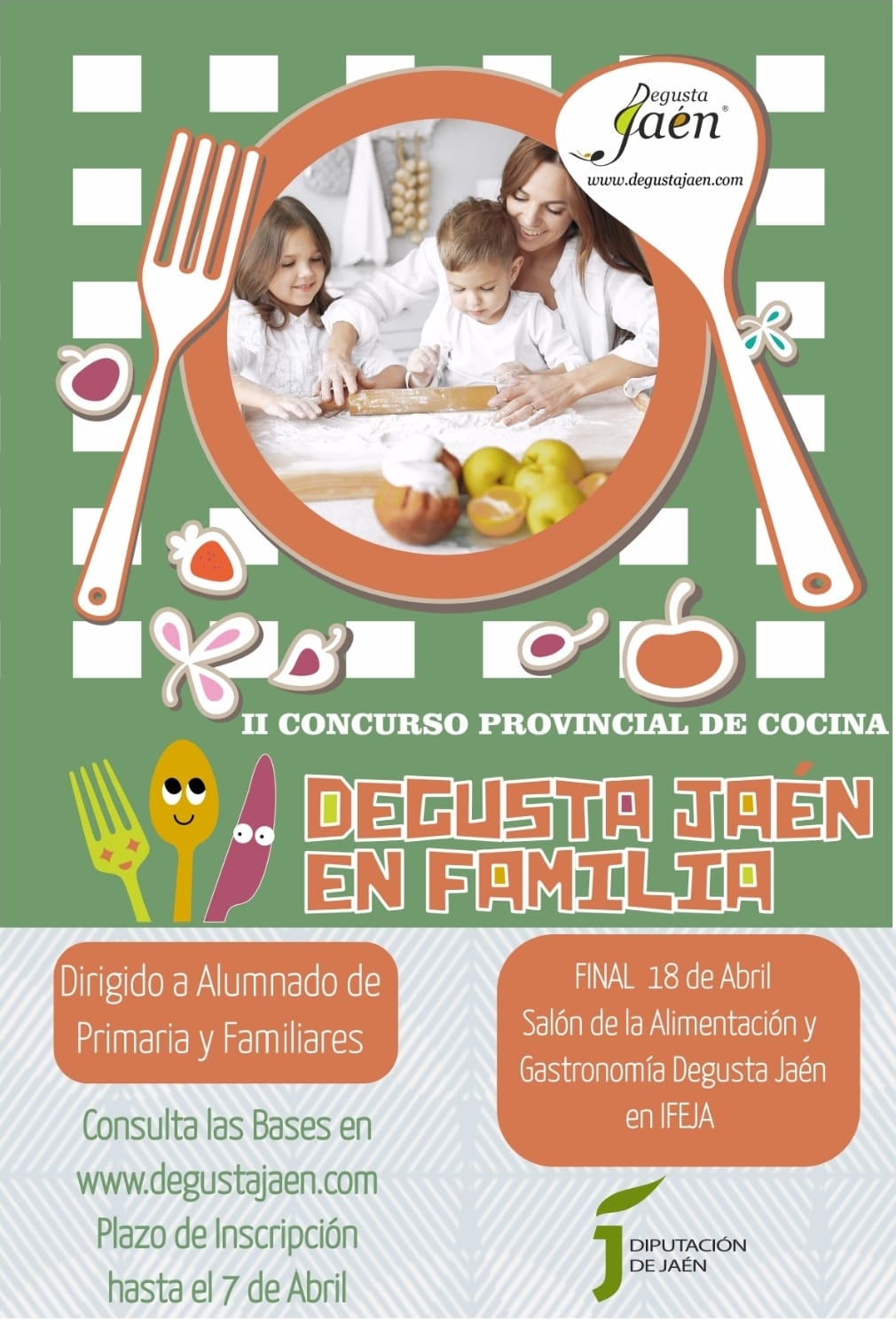 Se trata de un concurso de cocina dirigido a niñ@s de primaria y sus familiares que deberán elaborar una receta de cocina con productos de nuestra provincia con marca Degusta Jaén cuyo objetivo es que los más pequeños conozcan la enorme oferta de productos agroalimentarios de la provincia y su calidad, así como aprender cocinando y conocer la importancia de la dieta Mediterránea.
